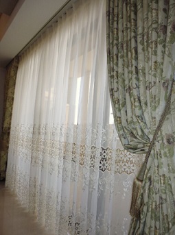 重厚な織物生地のドレープをお選びいただきましたので、クラッシックなお部屋にピッタリ合っていました[:にぱ:]