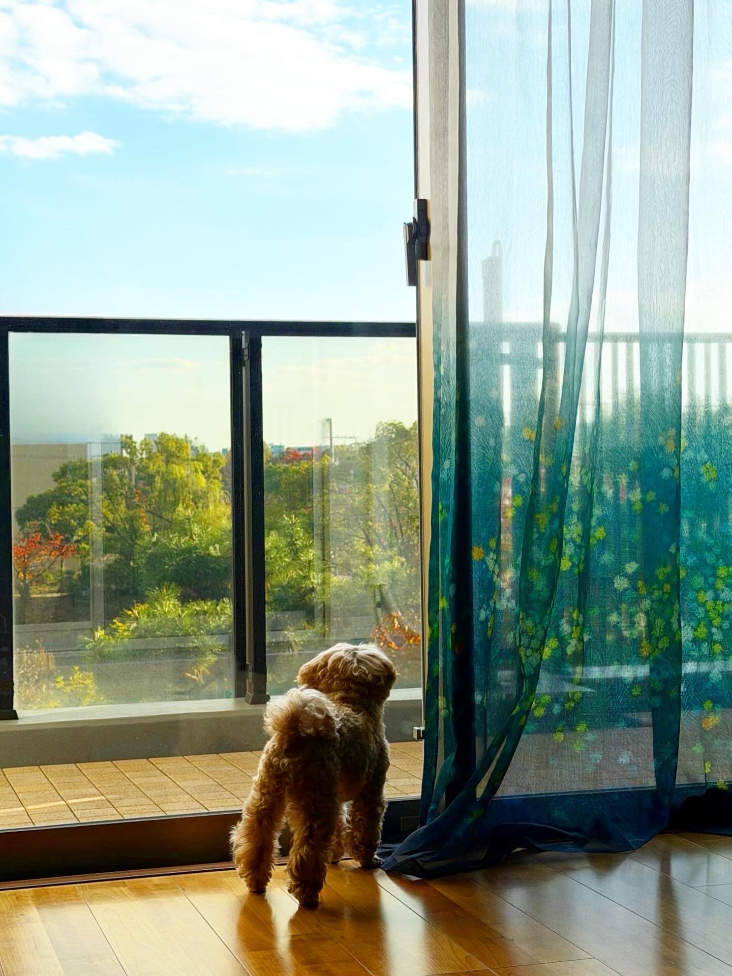 お外の眺望も緑に囲まれとってもよく、カラーのシアーレースとのつながりもできて、素敵でした