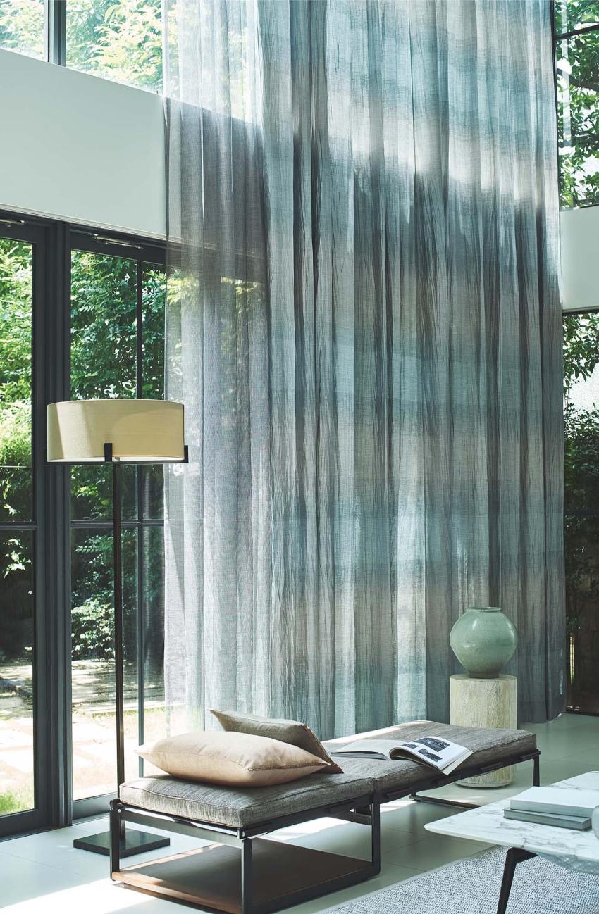 ご新居にリネンライクなドレープ、カラーシアーレースカーテンで、上品な美しさと心地よい空間一覧を表示