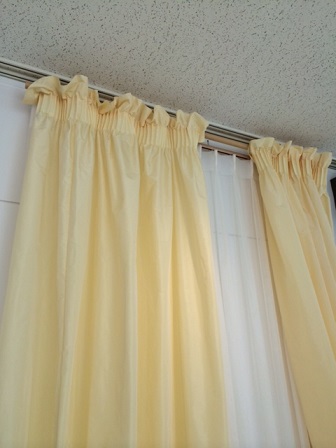黄色のドレープの上部はギャザーにしてリズミカルなフレンチスタイル