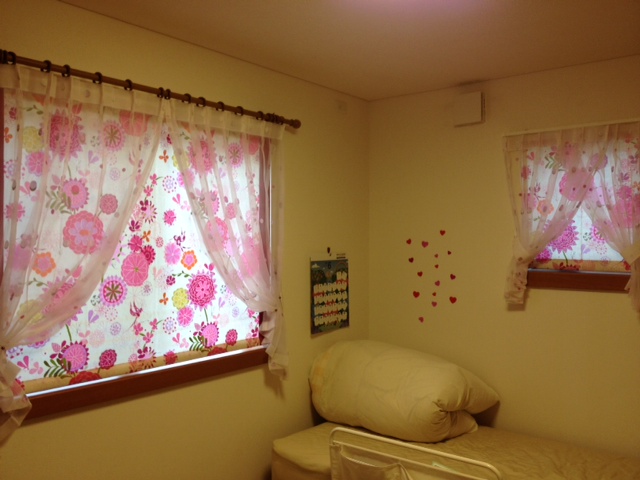 今回は、お嬢様のセレクトでとても可愛いカーテンをお選び頂きました[:ソレダ:]