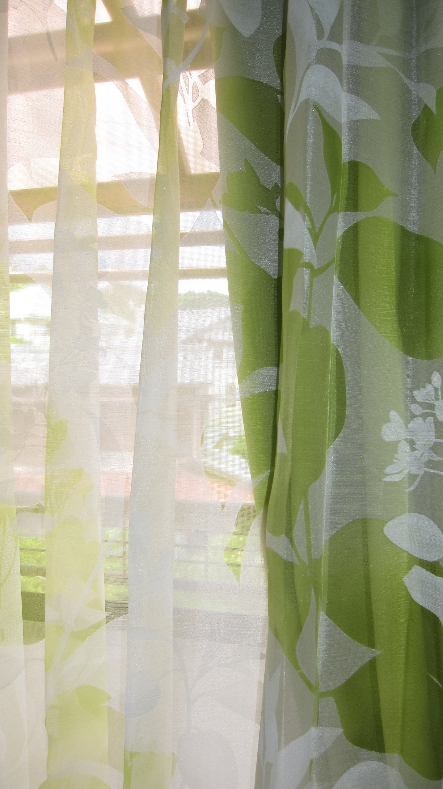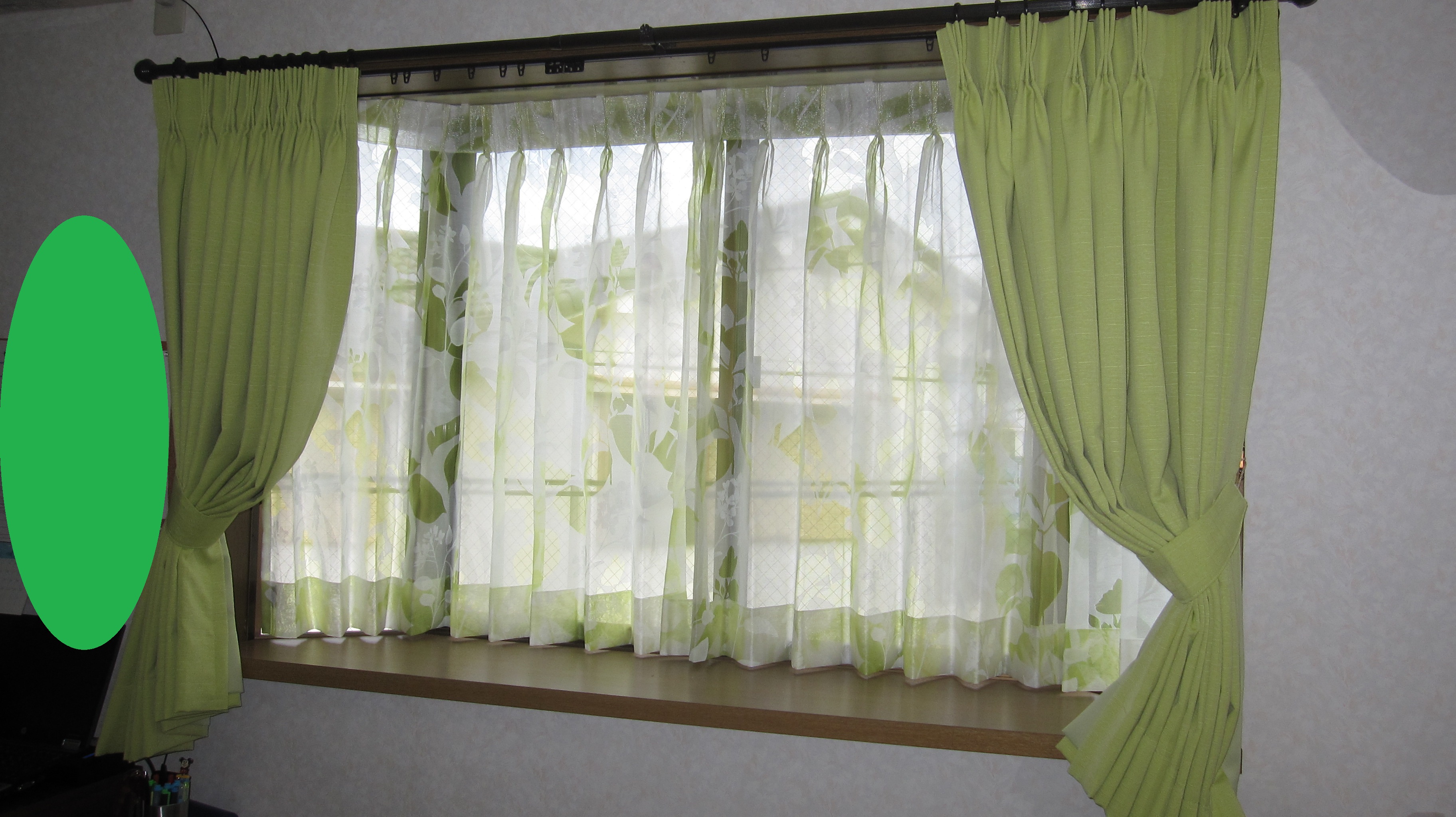 アップ写真。実はイエローグリーンのドレープには遮光生地もつけていただいております[:にぱ:]