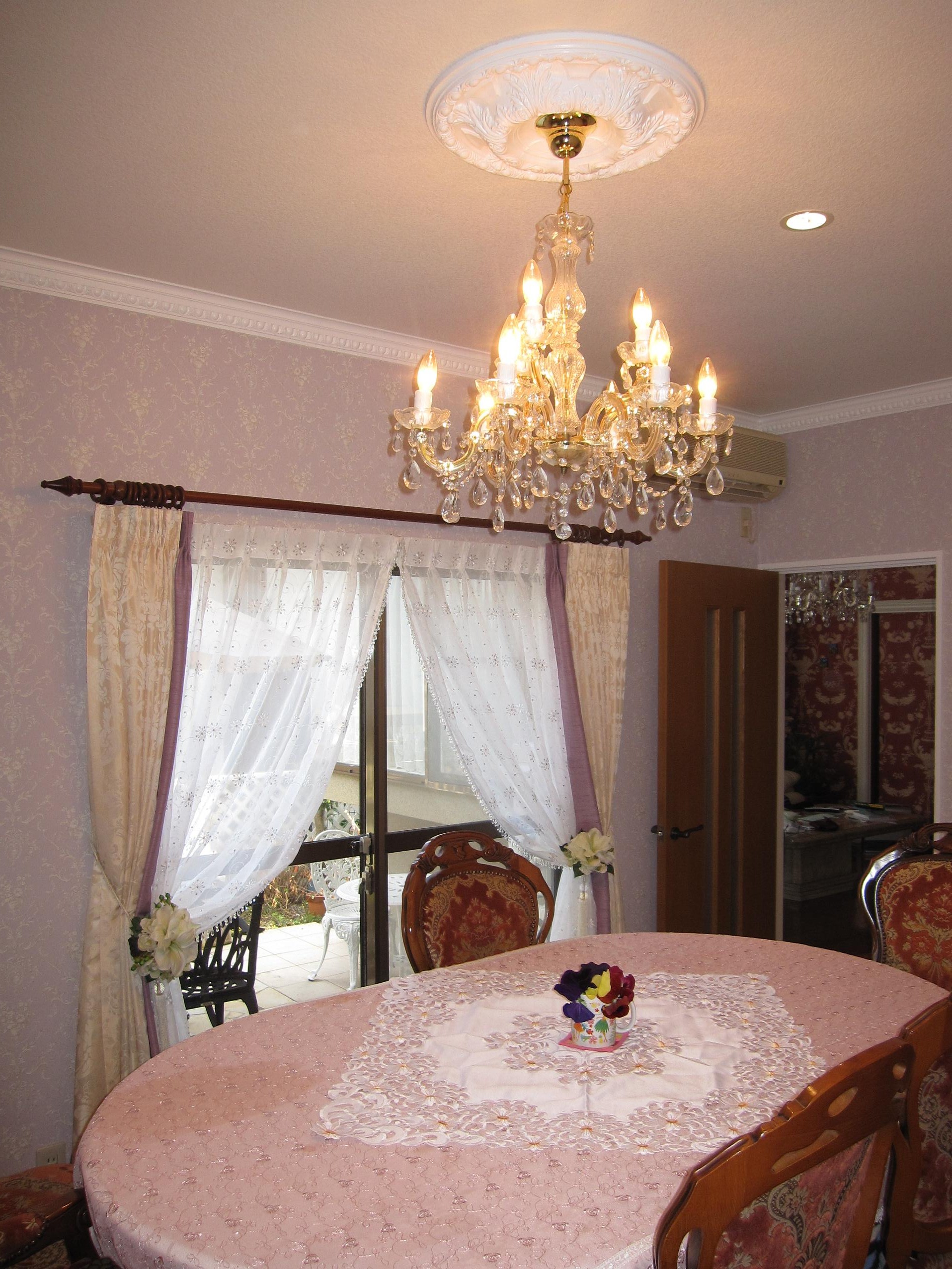 * シャンデリアも新しく取換え、シャンデリア上のメダリオンと天井周りには